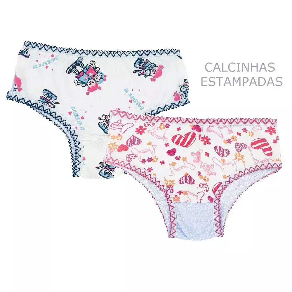 São calcinhas 100% algodão que vai proporcionar maior conforto para uso no dia-a-dia. Além disso, conta com estampas variadas e alguns modelos com renda.