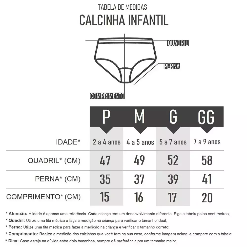 Os kits acompanham calcinhas com estampas sortidas PODENDO HAVER REPETIÇÃO caso haja falta de disponibilidade em estoque.