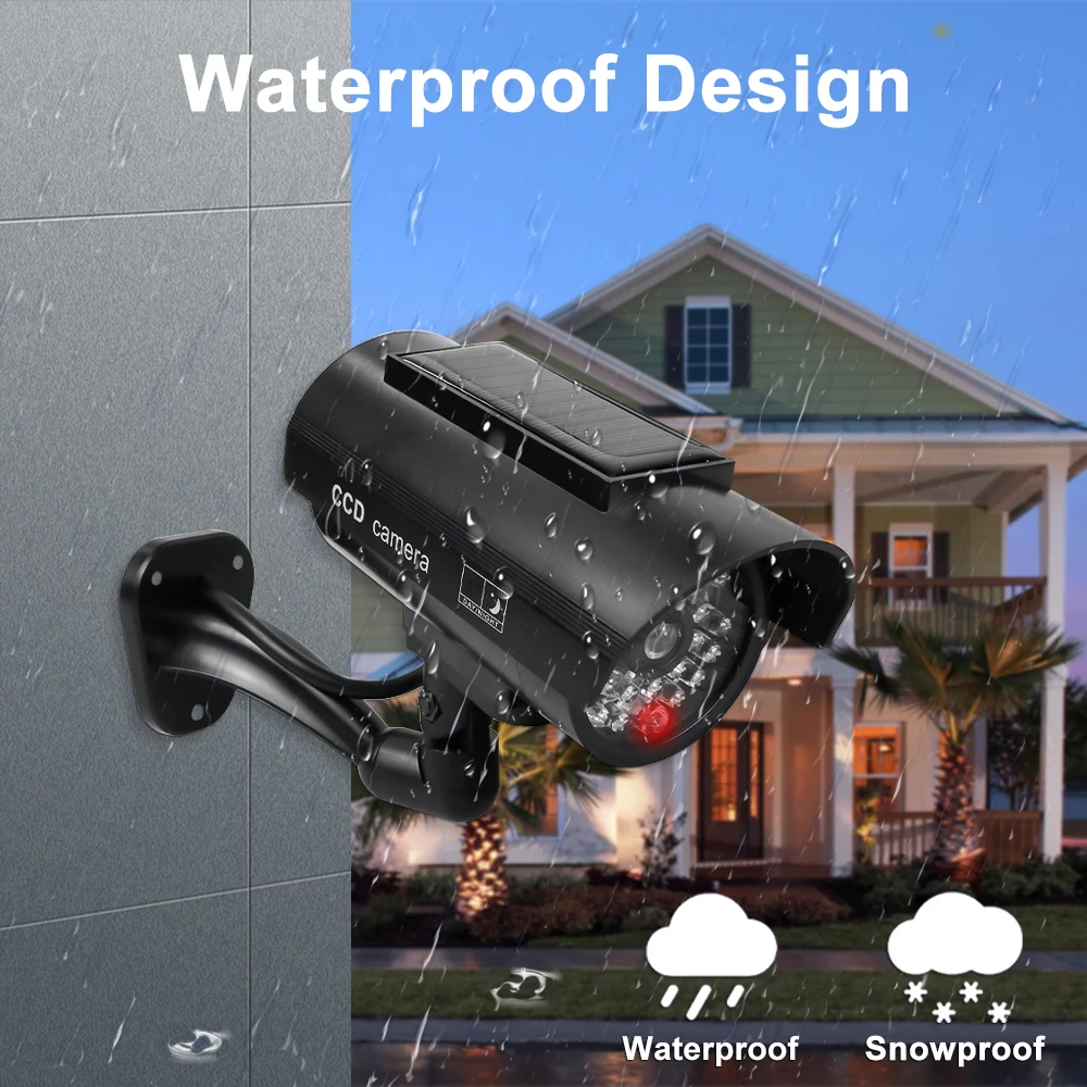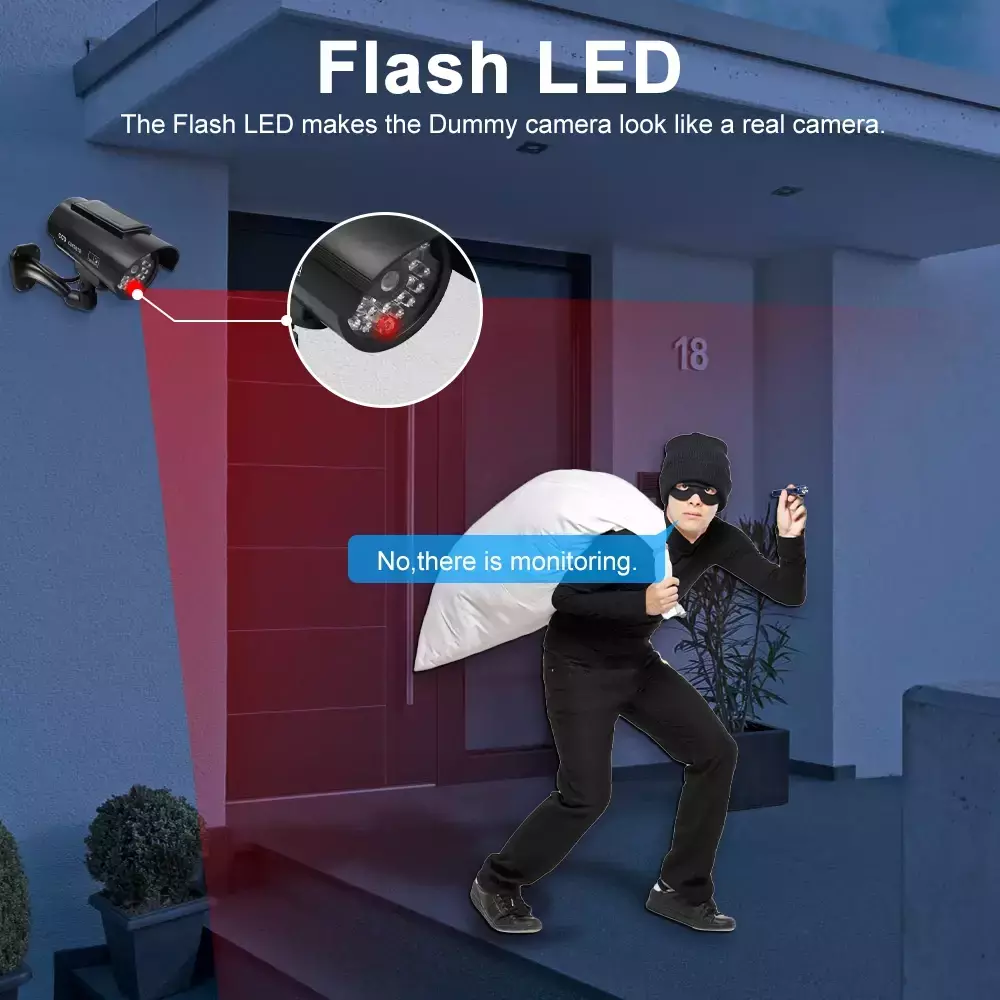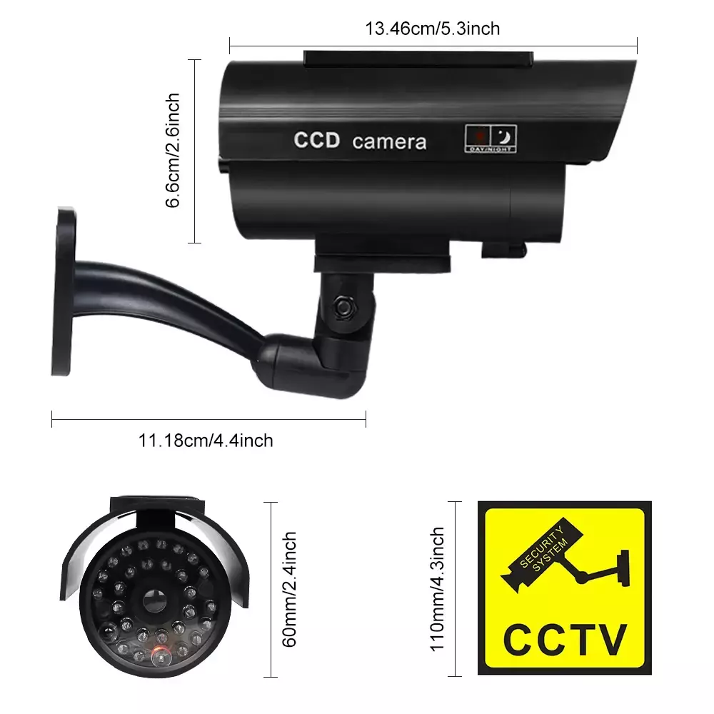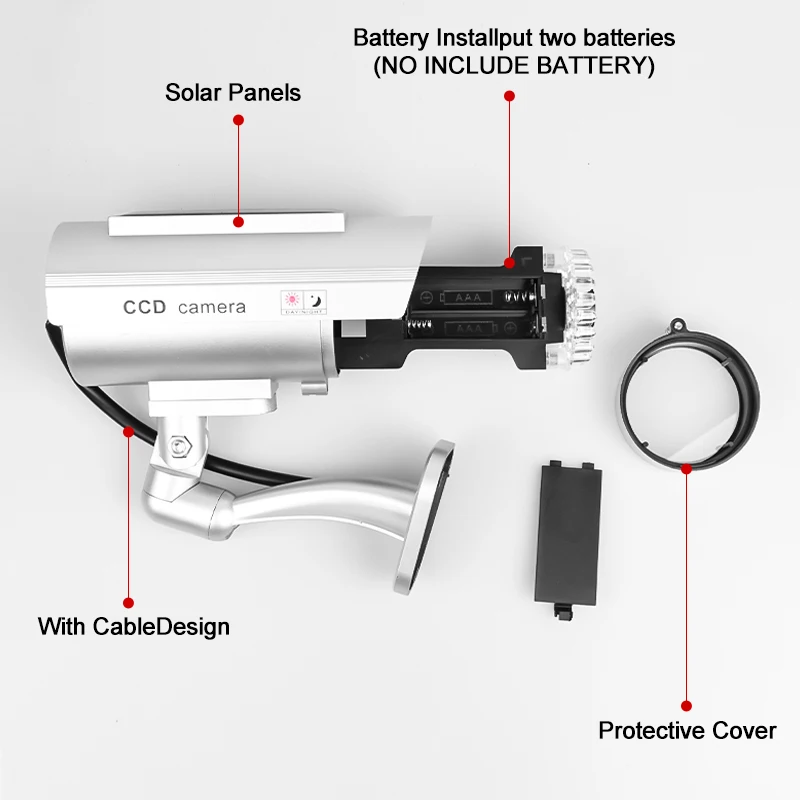 Essas câmeras fictícias de segurança são feitas na mesma caixa que as câmeras CCTV reais, o que dá autenticidade à aparência da câmera real, mas com o adicional do LED apenas
