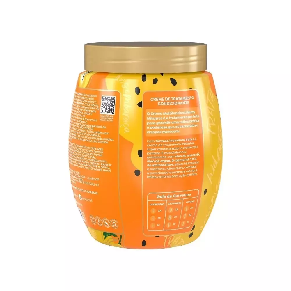 O Kit conta com 1 Creme de Tratamento Morango 3 em 1 Cachos dos Sonhos Multy Extraordinário, 1 Creme de Tratamento Melancia 3 em 1 Cachos dos Sonhos Multy Poderosos e 1 Creme de Tratamento Maracujá 3 em 1 Cachos dos Sonhos Multy Milagres.