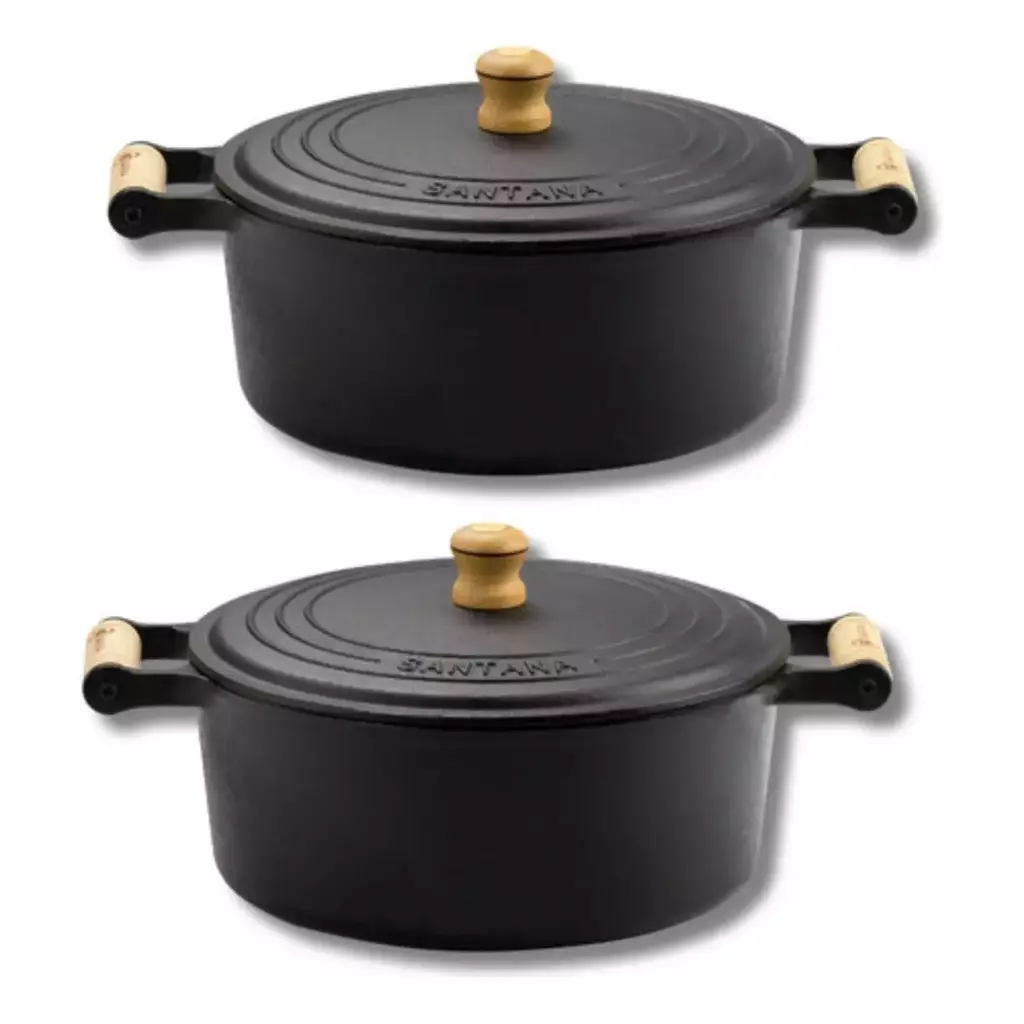 Uma das inúmeras vantagens da caçarola de ferro fundido é que esta pode ser utilizada em todos os tipos de fogão, desde aos modelos a gás, como também a lenha, elétrico e também em cooktop de indução. A Caçarola Santana é acompanhada por uma tampa de ferro e possui alças de madeira. Não podemos nos esquecer de mencionar que a caçarola de ferro da Santana é revestida com óleo 100% vegetal, por meio de um processo que é totalmente natural, o que contribui com a sustentabilidade e o cuidado com a sua saúde, de forma significativa e inovadora.