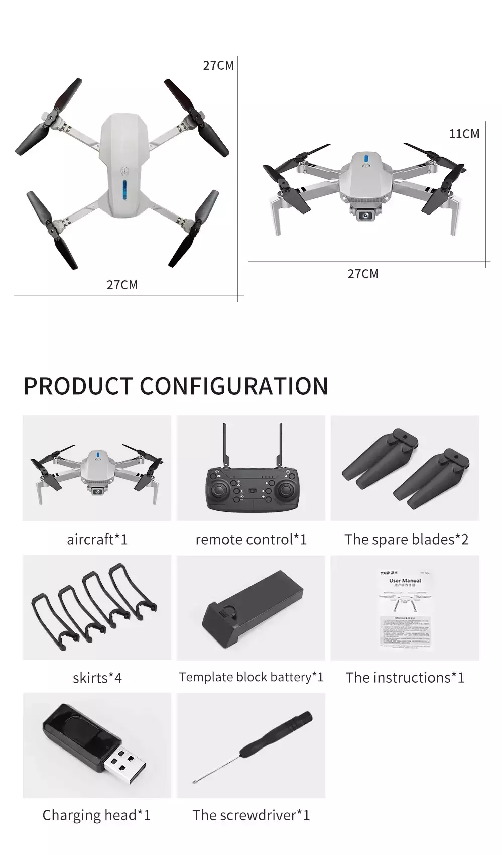 - A fuselagem do quadricóptero é feita de plásticos de engenharia de alta resistência e resistência, leve e durável.