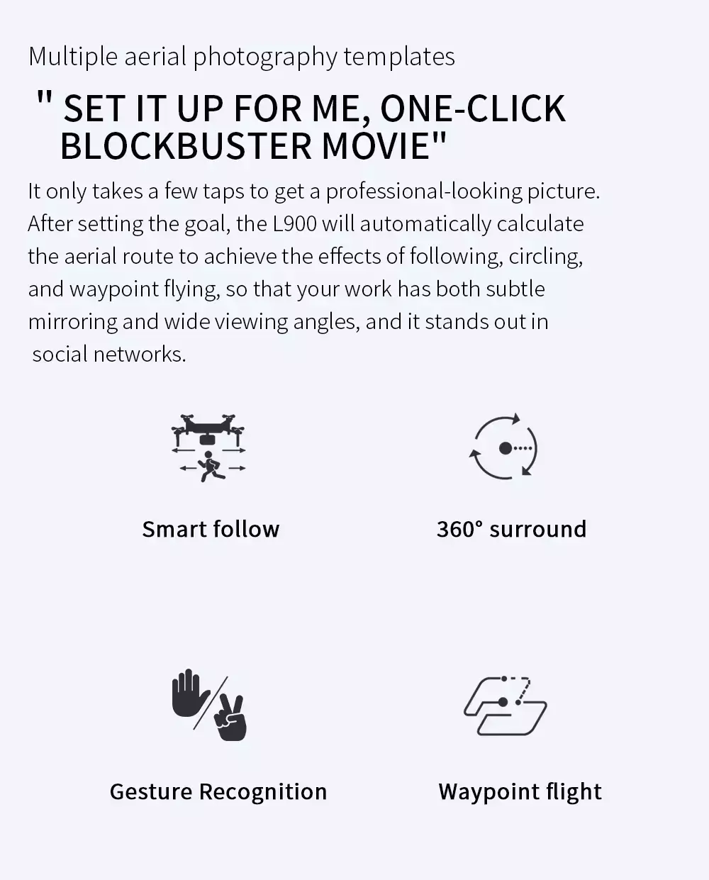 10.Modo Siga-me. O drone seguirá e capturará automaticamente você onde quer que você se mova.Mantendo você no quadro o tempo todo, mais fácil de obter fotos complexas, proporciona vôo com as mãos livres e selfie.