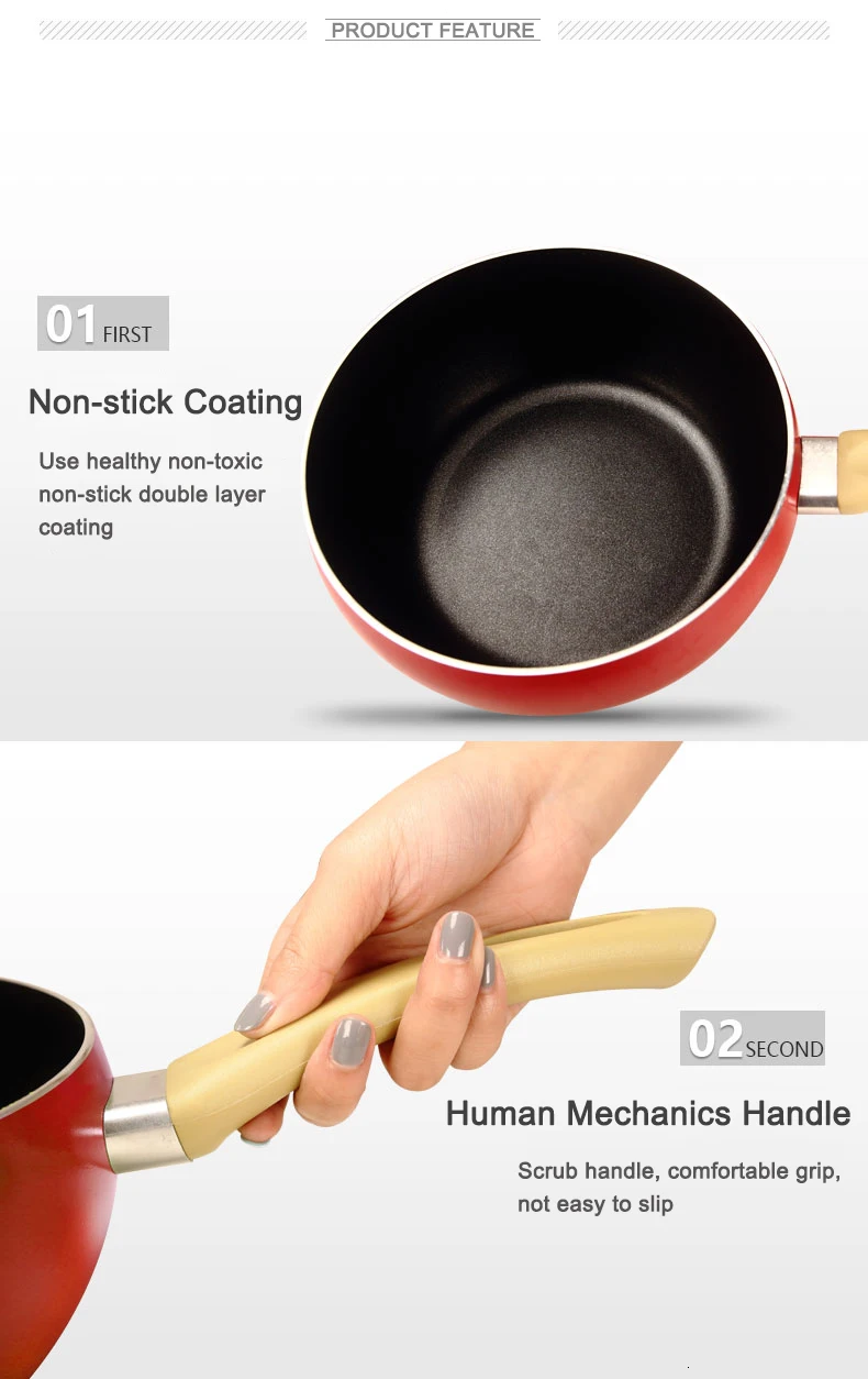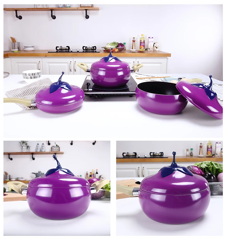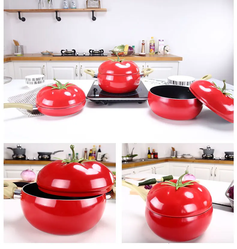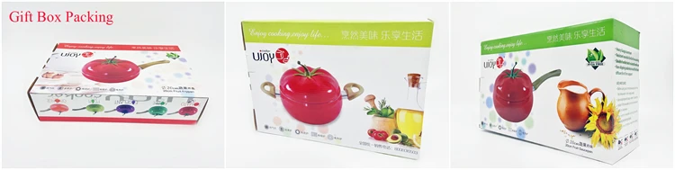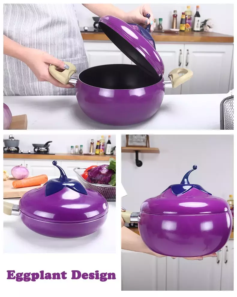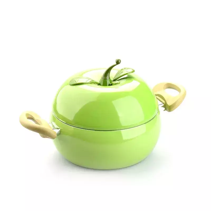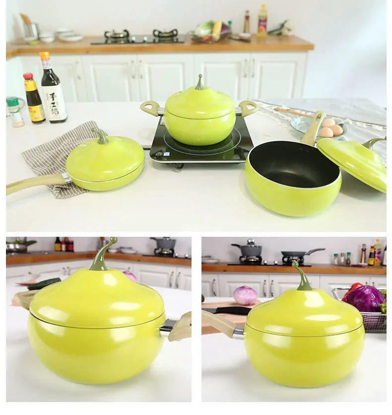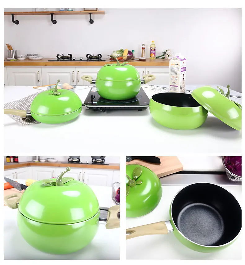 Esta é uma panela de alumínio antiaderente cozinha de alta qualidade com design de forma de frutas, design punho anti-escaldante, adequado para fogão a gás, fogão de indução, fogão de cerâmica elétrica, fogão de aquecimento elétrico. O produto conduz calor rapidamente, acelerando o tempo de cozimento. Embalado em uma caixa colorida da bolha para o transporte seguro, perfeito para o próprio uso ou como um presente. O exterior colorido aumenta a alegria de cozinhar.