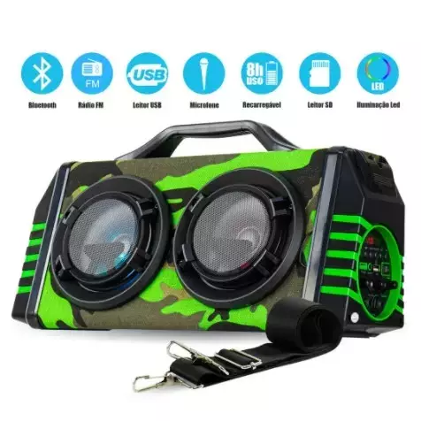 A caixa de som tem potência total de 60 Watts RMS, que possibilita ouvir suas músicas favoritas em um som alto e nítido a qualquer momento, e com dois alto-falantes de longo alcance, para incrementar ainda mais suas batidas e deixar você turbinar suas faixas favoritas com som forte e encorpado. Aumente o seu som, e mantenha a qualidade, faça a festa com as luzes do LED e alto-falante com efeitos de DJ, faça o seu próprio karaokê, divirta-se, sozinho ou com seus amigos.