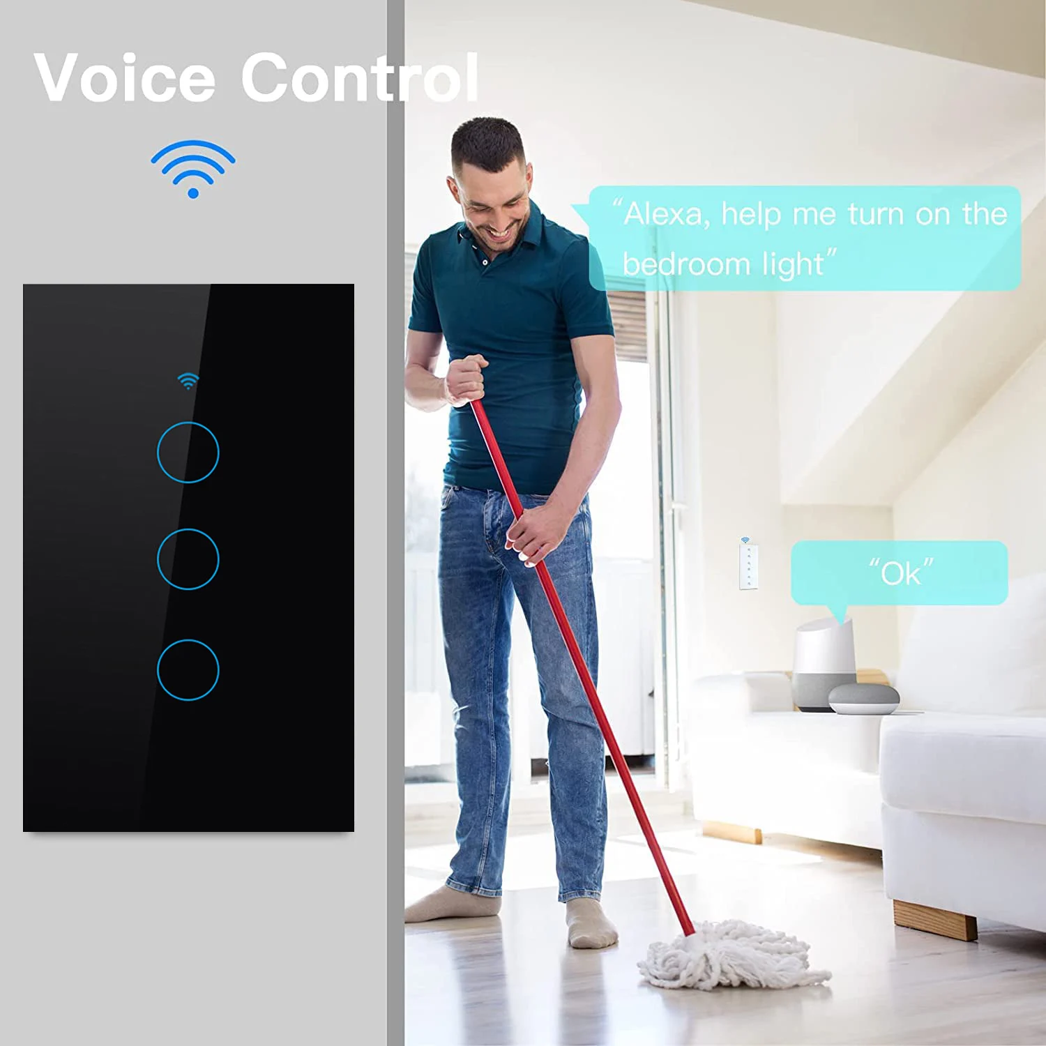 2.Controle por voz: Perfeitamente compatível com Alexa e trabalhar com o Google Home. Ligue/desligue as luzes com comandos de voz quando as mãos estiverem cheias.