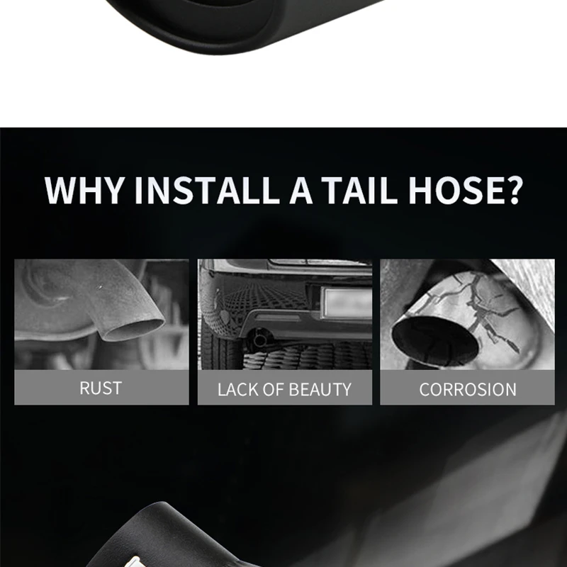 - Feito de aço inoxidável de alta qualidade, acabamento requintado, sem desbotamento, sem ferrugem; não rígido, dinâmico; bonito e durável; Proteja o tubo de escape original do carro.