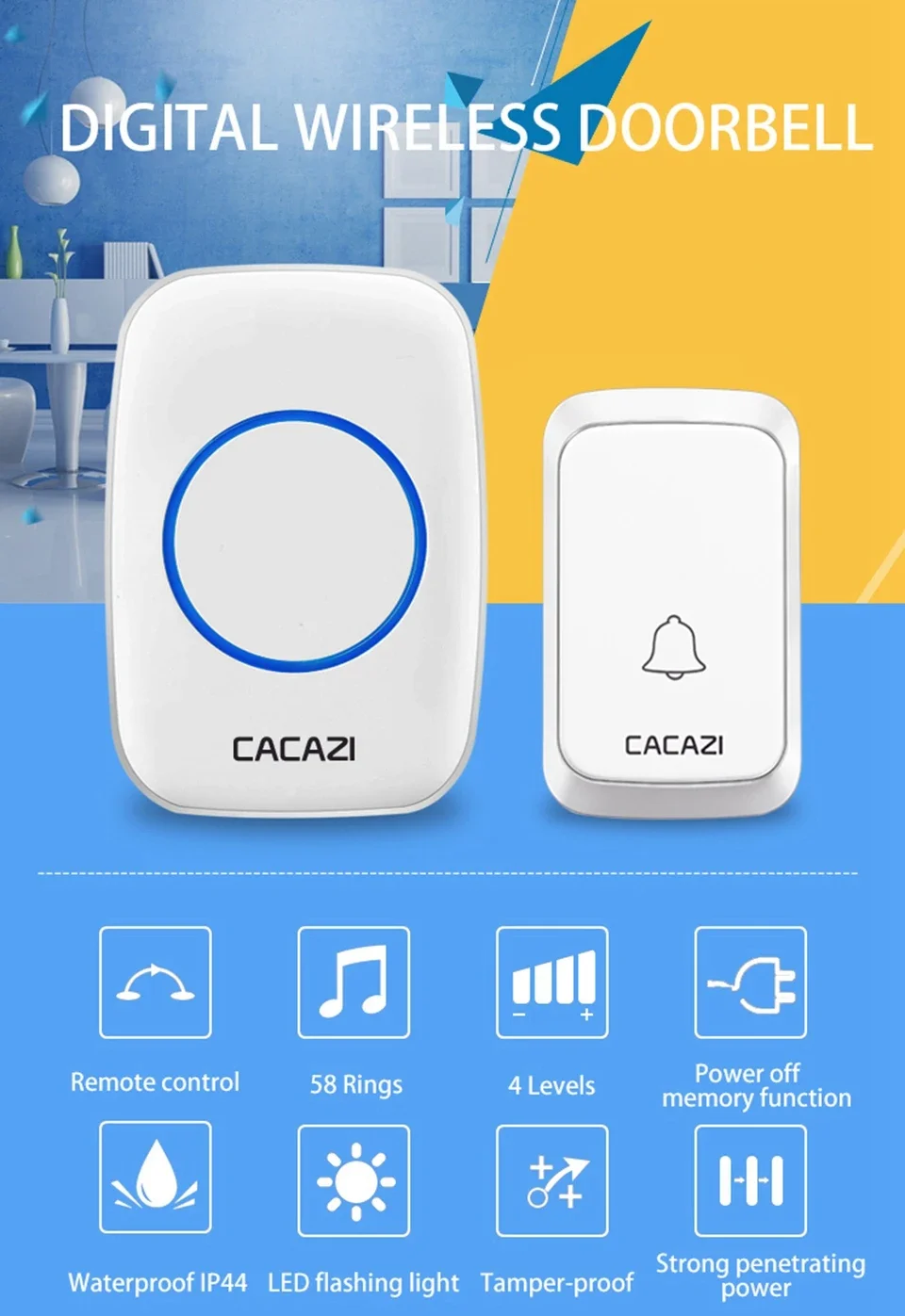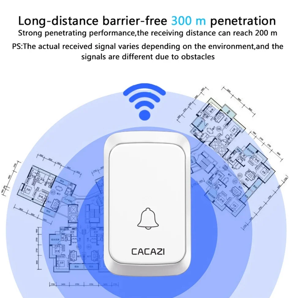 1 BOTÃO DE PORTA1 RECEPTOR DE PORTA1 FITA ADESIVA DE DUPLA LADO1 PARAFUSO Características e especificações: 1. Pressione o botão, o código de super aprendizado pode aprender livremente a combinar, pode ser receptor e botão correspondentes ilimitados. 2. O transmissor sem projeto do mandril do parafuso para conseguir impermeável e dustproof. 3. O transmissor USAR uma bateria alcalina 23A12V (bateria não incluída). 4. O receptor usa 3 pilhas alcalinas AA, sem necessidade de conectar a fonte de alimentação e a bateria pode ser usada. (não inclui bateria). 5. Recebendo a distância: 300 medidores na área aberta. 6. O sinal sem fio será afetado por obstáculos. Quanto mais obstáculos, mais grave é a perda de sinal. 7.Receiver tem 4 níveis (pode ser mudo) 20-80db,36 músicas para escolher. 8. tamanho do transmissor: 77*46*20mm 9. tamanho do receptor: 95*65*24mm 10. Modelo: Bateria DC A06 (sem necessidade de conectar) Nota: O botão não pode ser colocado em uma porta de ferro porque interferirá com o sinal. Se o receptor não tocar quando você pressionar o botão depois de receber a campainha, verifique as etapas: 1. Confirme por favor se o botão tem uma bateria alcalina 23A12V instalada. 2. Verifique se o receptor tem uma bateria alcalina 3 * AA instalada. 3. Por favor emparelhe as campainhas novamente. Como emparelhar os sinais Pressione e segure o botão de volume do receptor e do transmissor por cerca de 8 segundos para emparelhar com sucesso. H