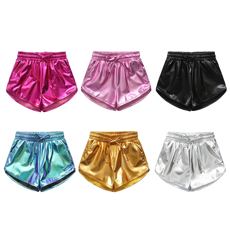 Crianças Meninas Dança Shorts Elastic Metallic Ballet Pants Crianças Glossy Ginástica Dancewear Cor Sólida Teen Sports Shorts