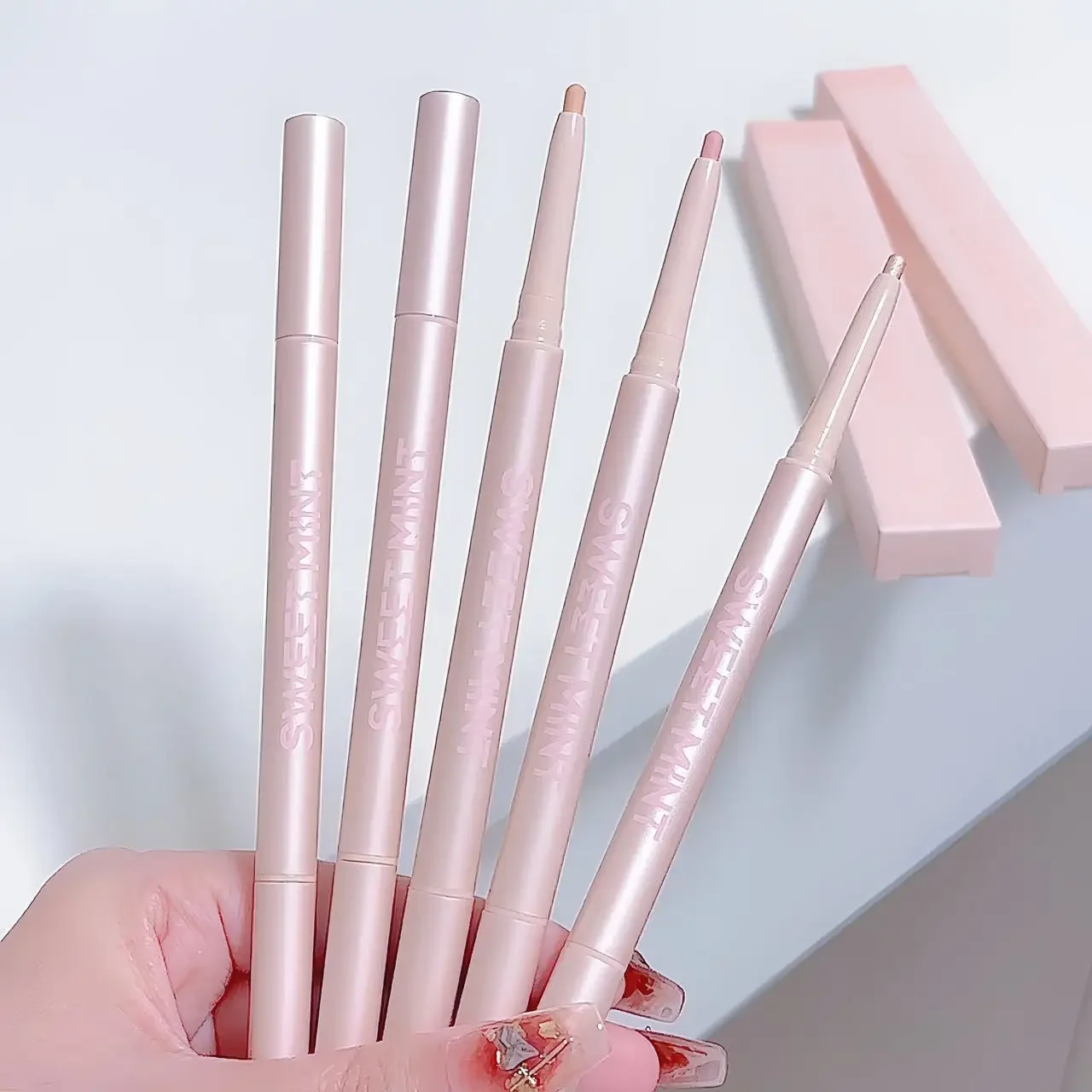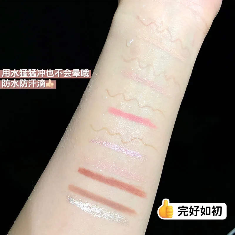 1. Caneta de maquiagem multiuso - Este conjunto pode ser usado como sombra, delineador, iluminador e contorno.Cada conjunto está disponível em 3 cores.Temos cor nude, rosa pêssego nude, ouro brilhante e rosa dourado que estão disponíveis em tons foscos e brilhantes para escolher, que atendem às suas necessidades de cada look de maquiagem.