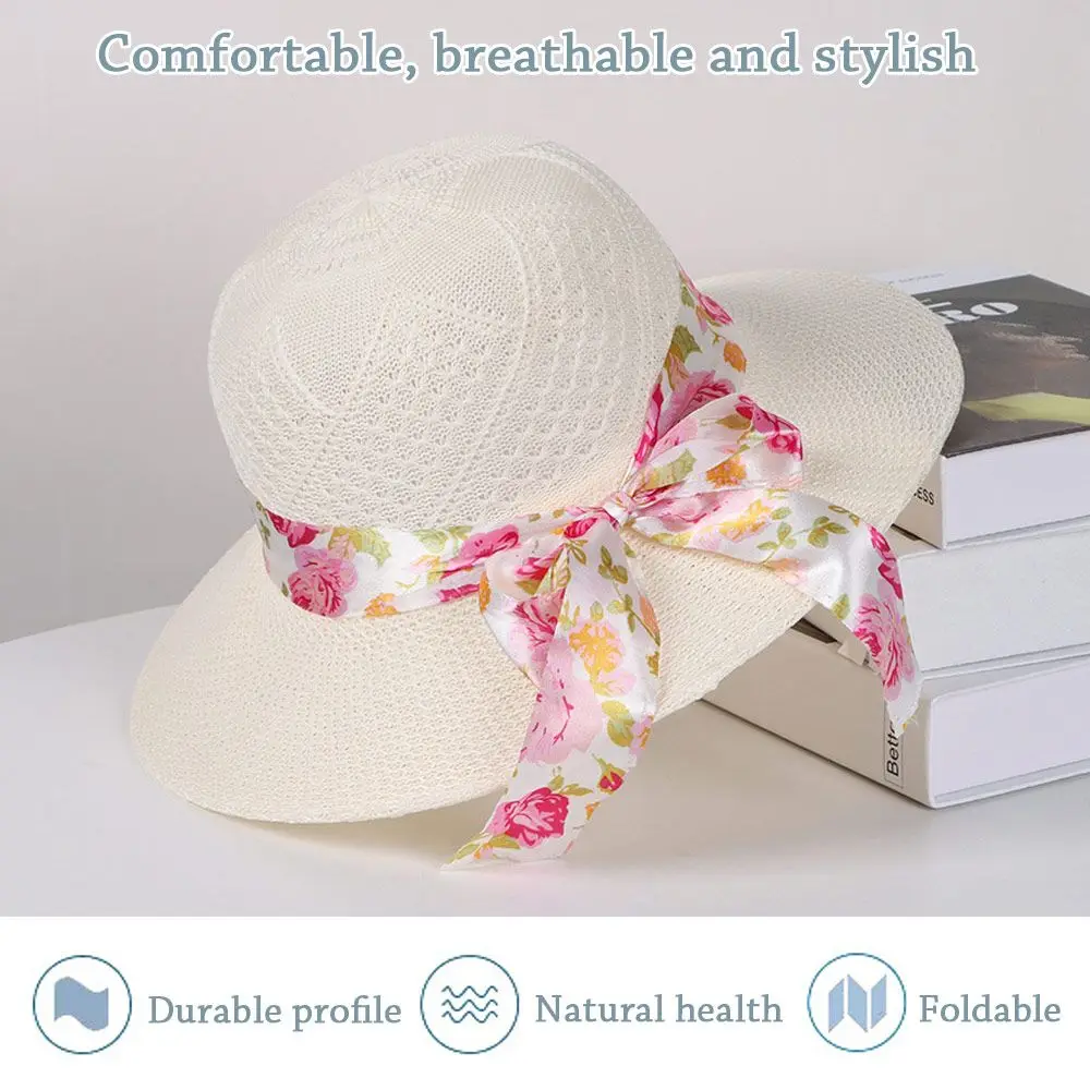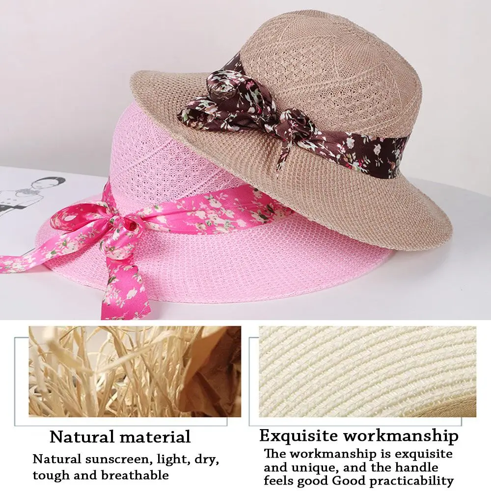 100% Brand New e alta qualidade. Tipo: Chapéu de sol Viseira Material: Palha Cor: 4 cores para sua escolha Cap brim:8cm Altura do tampão: 15cm Circunferência do tampão: 55-60 cm (adulto, tamanho livre) Estilo: fitas, proteção UV, dobrável, praia, feriado, ocasional, aba larga, verão, mola, protetor solar exterior. O pacote inclui: 1 x chapéu solar