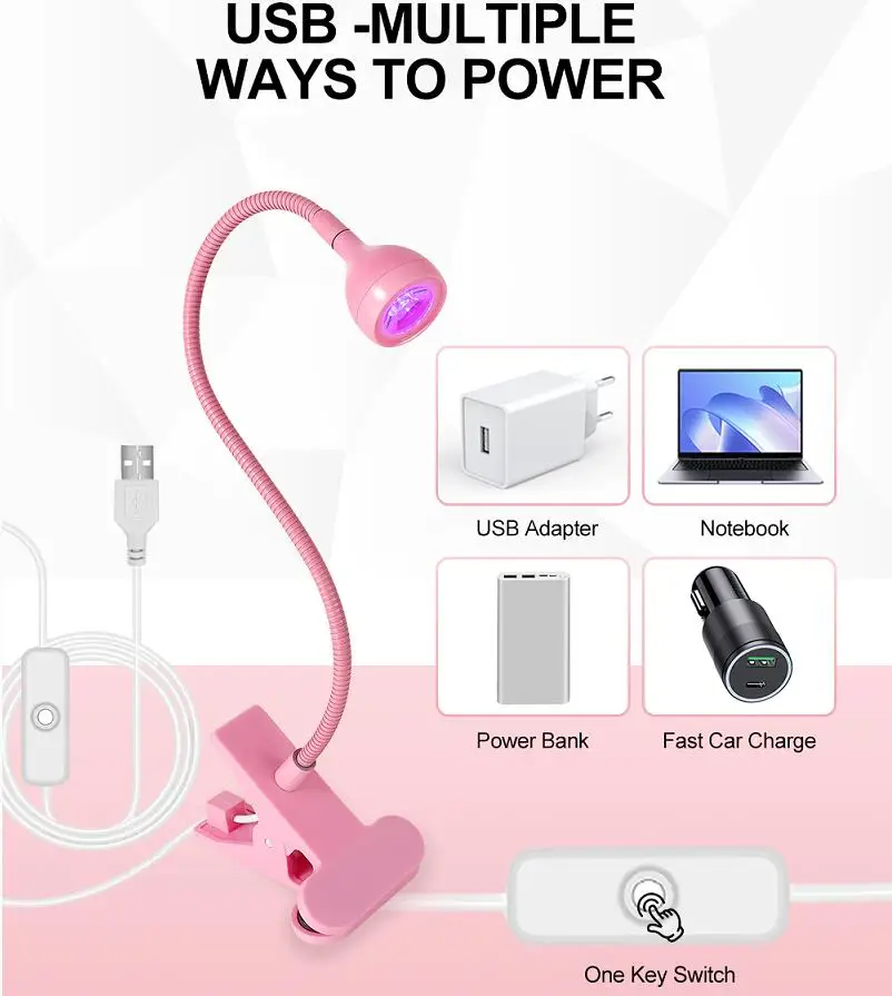 LED Nail Lâmpadas 3W flexível Gooseneck Lâmpada Quicky Dry Nail Manicure Secador Gel Polonês Luz de cura para Unhas Gel