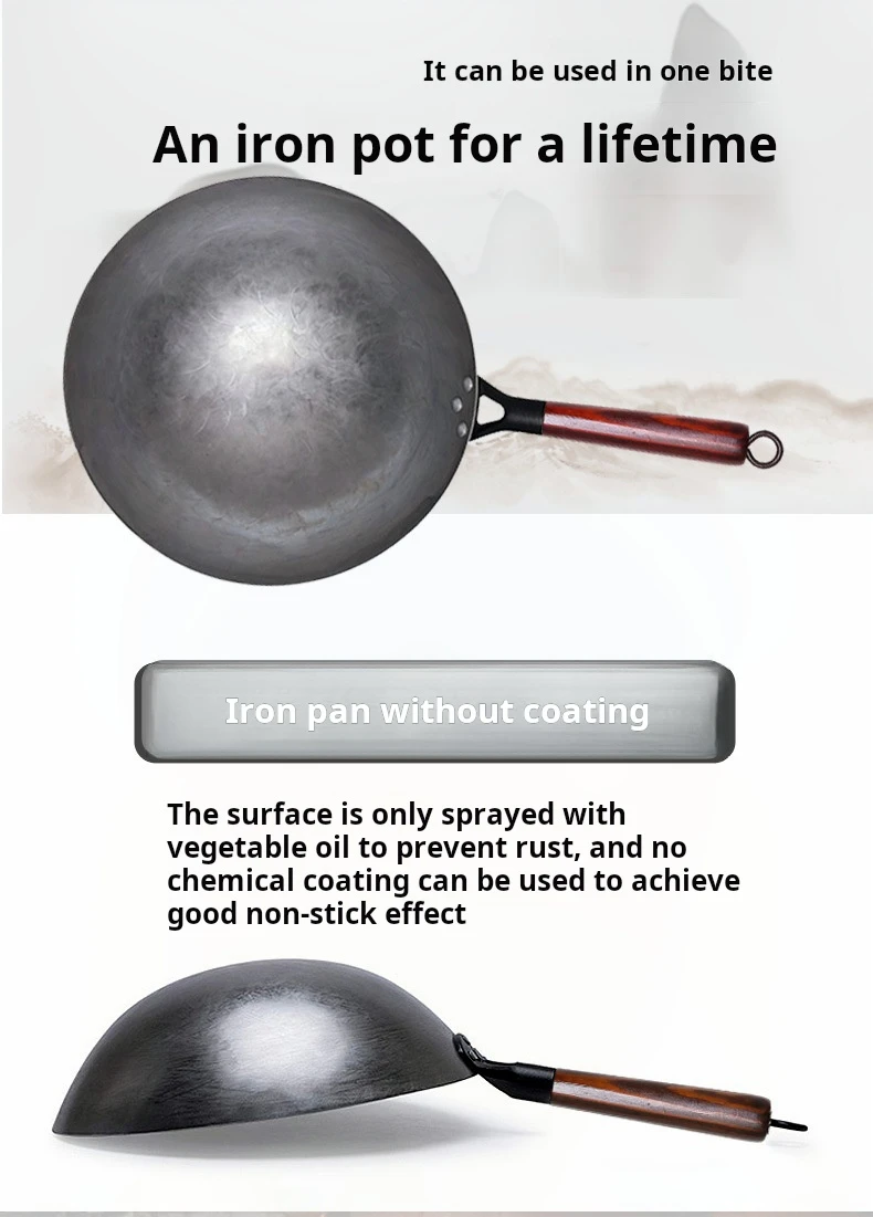 Não é fácil ficar na panela: por causa do forjamento manual, a superfície formará muita textura, para conseguir o efeito de pan antiaderente, ecológico
