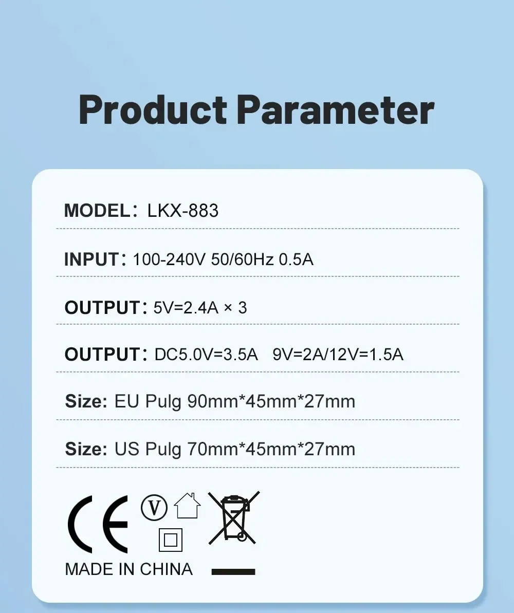 • Saída de alta potência: Com uma potência de saída máxima de 12W, este carregador pode lidar até com os dispositivos mais consomcados de energia.