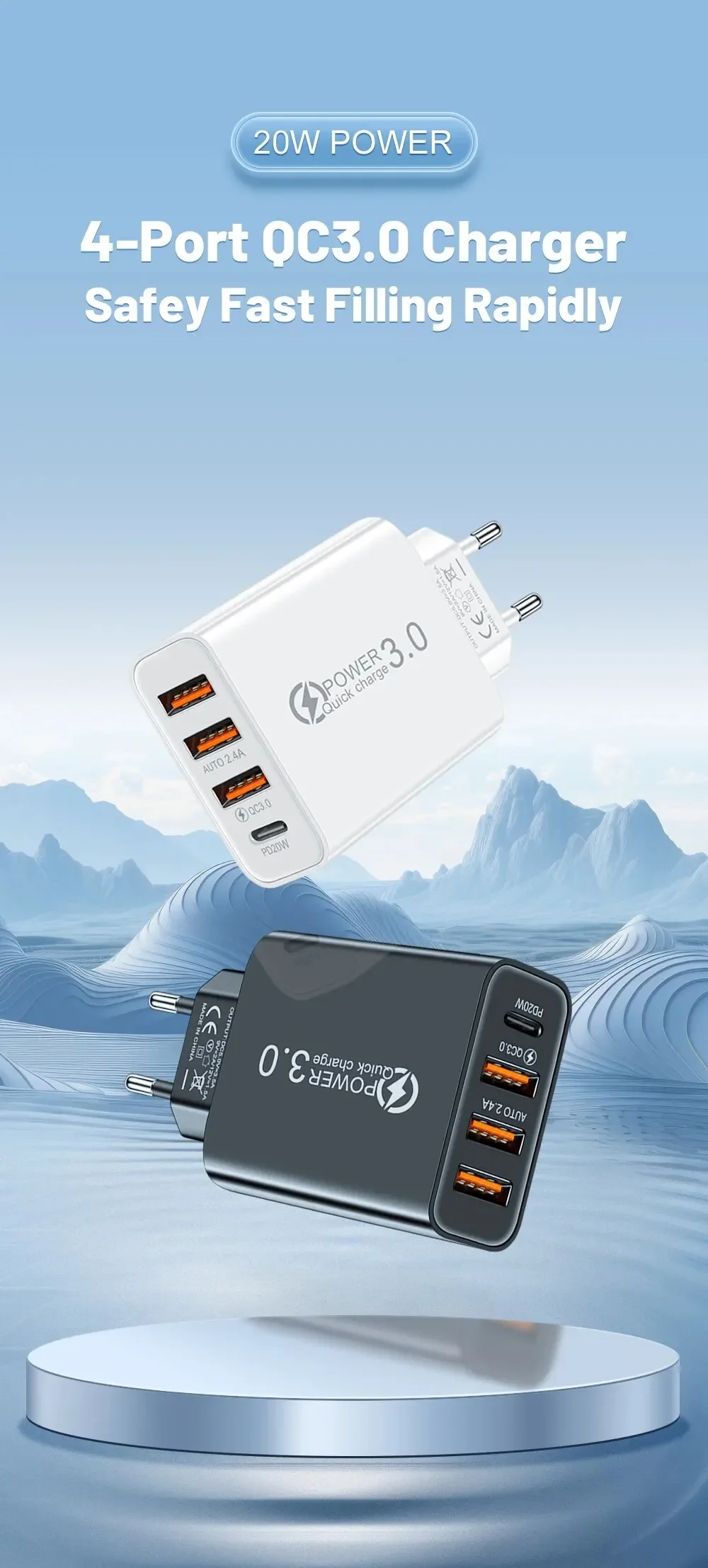 Portas USB: 1 portas USB-C + 3 USB-A [Total 20W]