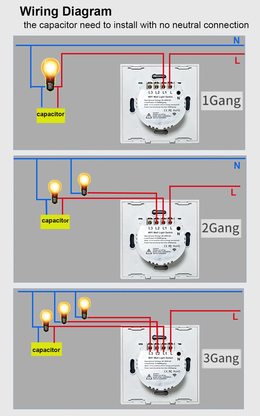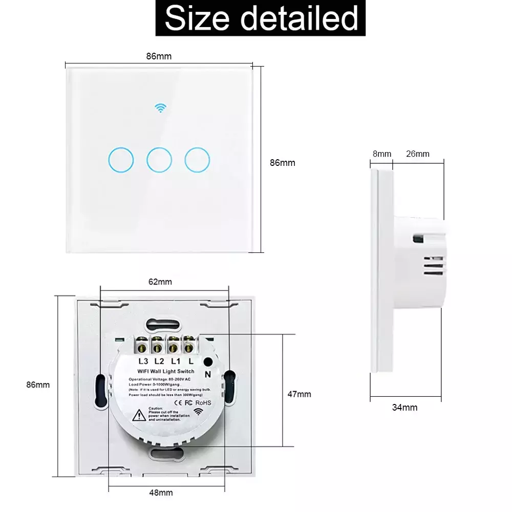 Carga avaliado: 5-150W/Gang