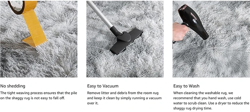 ?NOTAS: 1. Não passe a ferro; 2. Não use em pisos molhados; 3. Não lave a máquina (isso pode causar camadas) 4. Por favor, use um aspirador de baixa potência ou lave com um detergente neutro; 5. Coloque-o em um local ventilado por 1-2 dias para recuperar plana e fofa.