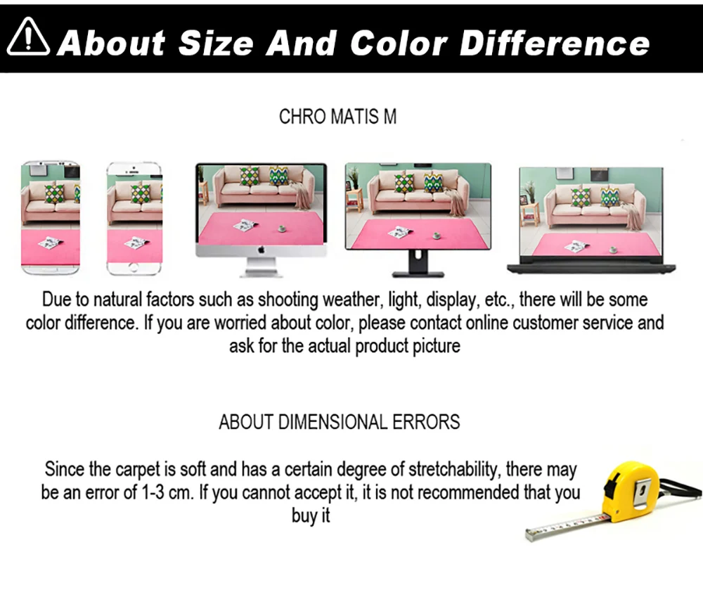 2. Se você receber algumas rugas irregulares, por favor, agite-o ou deixe-o naturalmente por dois dias para restaurá-lo (Ps: Porque o volume do pacote é estritamente limitado pela logística internacional, o tapete é dobrado e embalado, então quando você receber o pacote e abri-lo, você vai sentir algumas rugas)